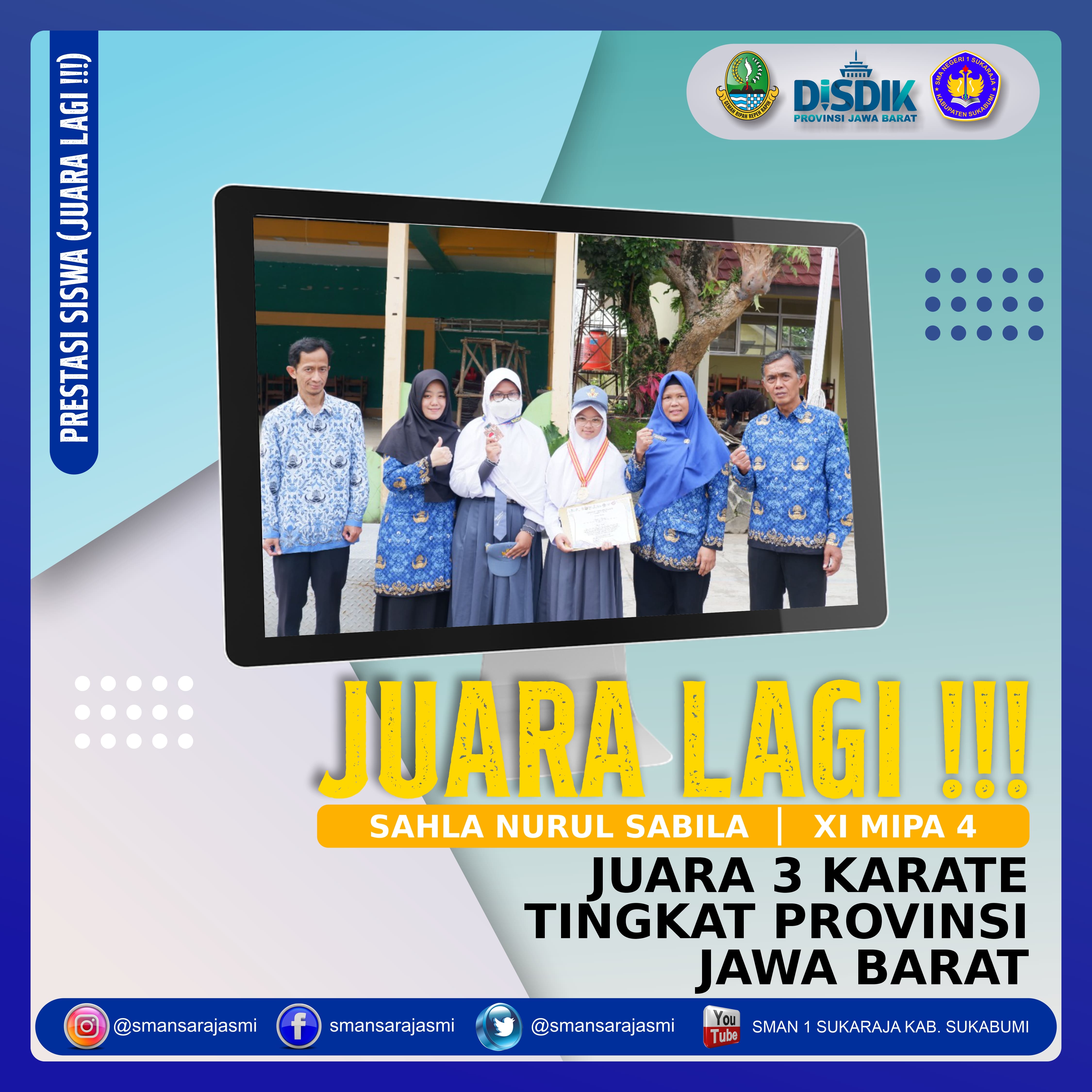 ![]() | juara 3 lomba Karate tingkat Provinsi Jawa Barat. Selamat dan sukses untuk Sahla Nurul Sabila Kelas XI MIPA 4 berhasil meraih juara 3 lomba Karate tingkat Provinsi Jawa Barat. |